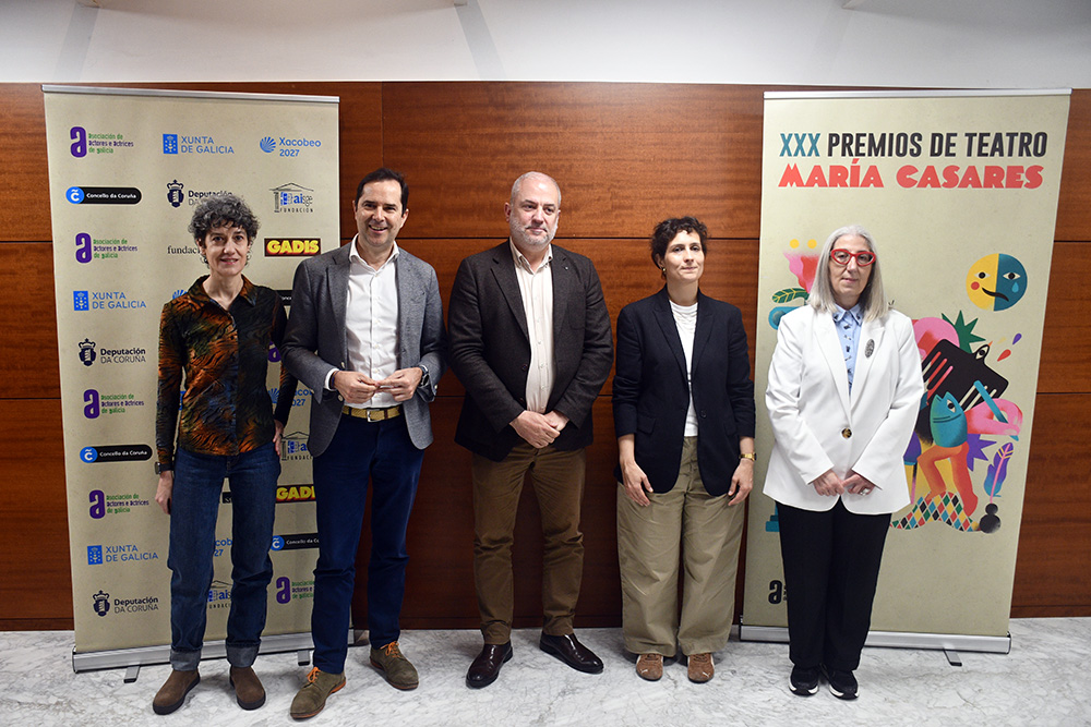 A Asociación de Actores e Actrices de Galicia (AAAG) presentou esta mañá no Teatro Rosalía Castro todos os detalles da 30ª edición dos Premios de Teatro María Casares, o principal recoñecemento das artes escénicas en Galicia. O acto contou coa presenza de representantes da Xunta de Galicia a través da Axencia Galega das Industrias Culturais (Agadic), a Deputación da Coruña, o Concello da Coruña, a propia AAAG e Gloria Rico, directora da gala.
