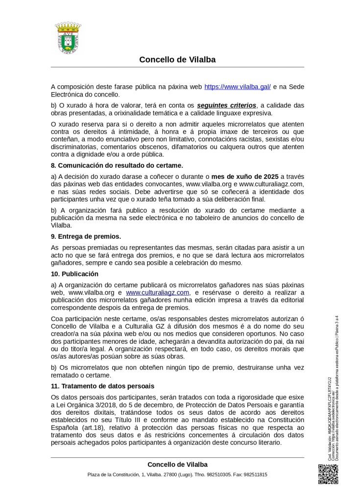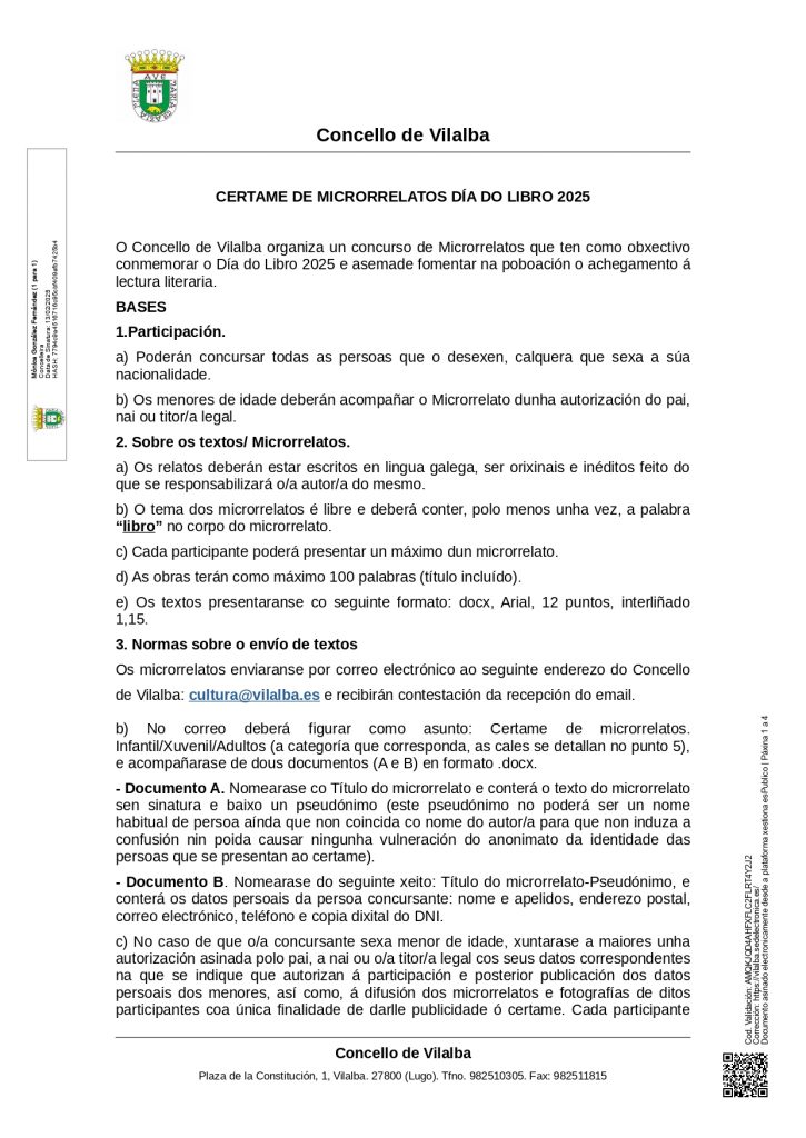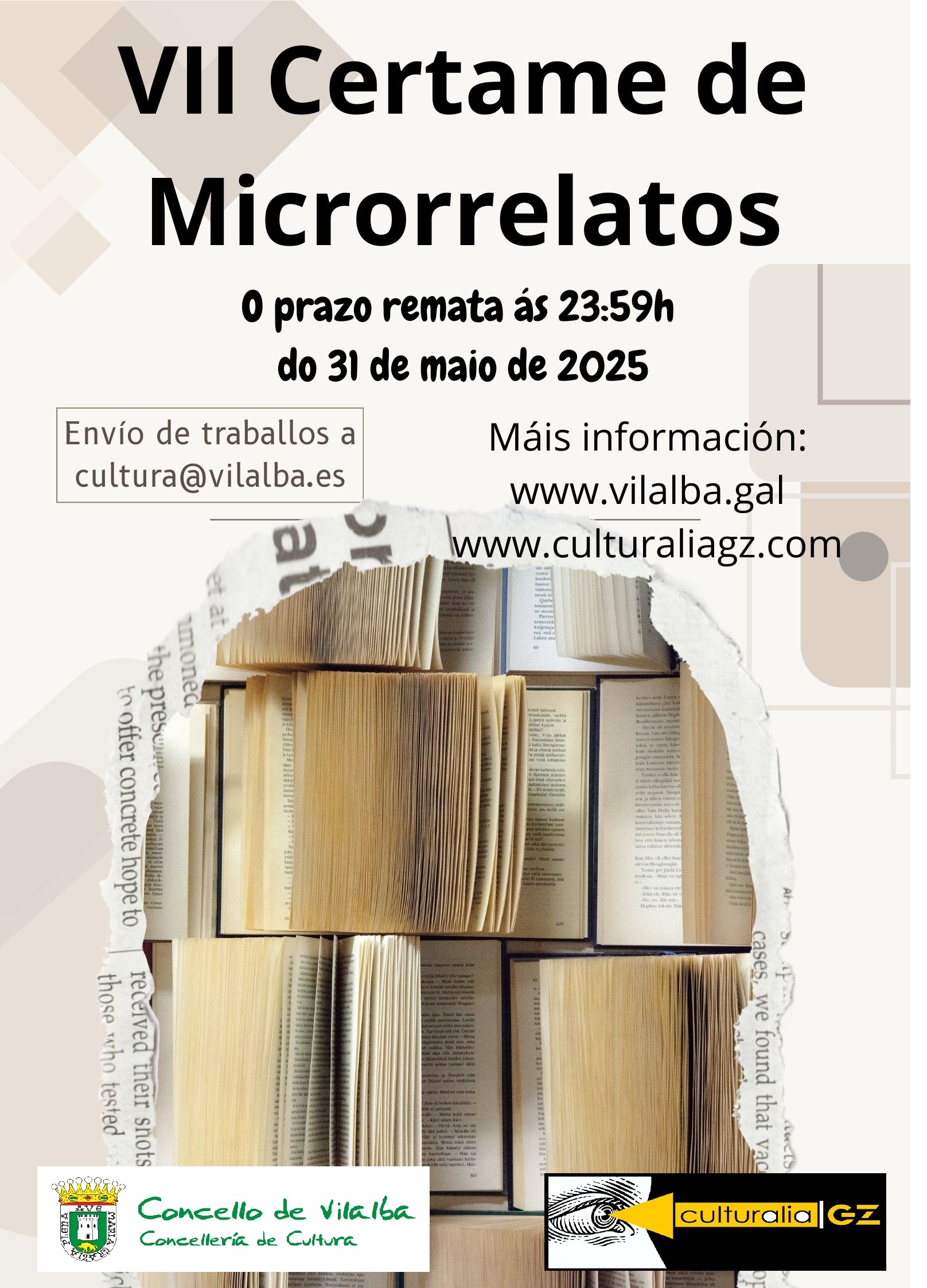 O Concello de Vilalba, coa colaboración de Culturalia GZ, convoca o VII Certame de Microrrelatos DÍA DO LIBRO 2025 conforme ás seguintes