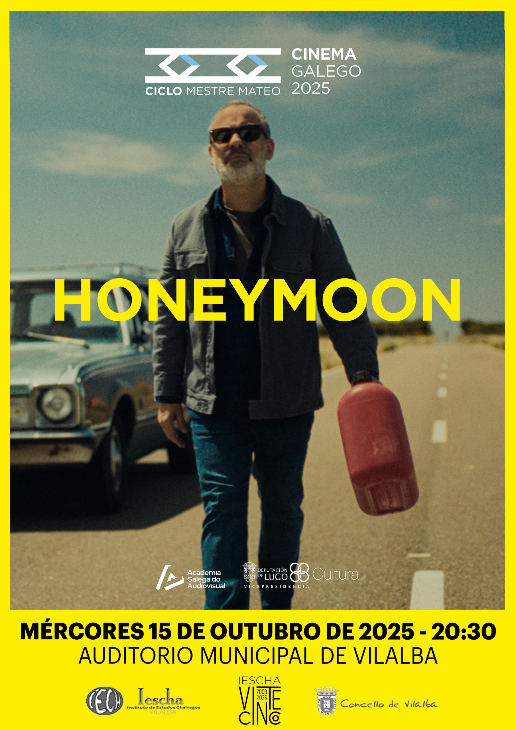 O Instituto de Estudos Chairegos (IESCHA), en colaboración coa Área de Cultura-Vicepresidencia da Deputación de Lugo, Academia Galega do Audiovisual e o Concello de Vilalba, organiza a proxección da longametraxe de ficción HONEYMOON, dirixida por Enrique Otero, continuando así co CICLO MESTRE MATEO-2025 que durante os próximos meses brindaranos a oportunidade de poder disfrutar das películas finalistas (documentais, longametraxes e curtas) dos XXIII PREMIOS MESTRE MATEO.