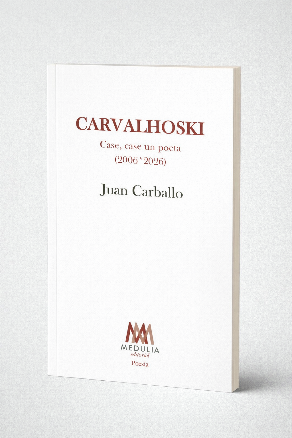 Carvalhoski – Case, case un poeta (Editorial Medulia) é o nome do novo libro que xa está disponible en todas as librarías da Galiza, e a primeira presentación será o 24 de xaneiro de 2026 ás 20:00 horas no Auditorio de Cangas de Morrazo.